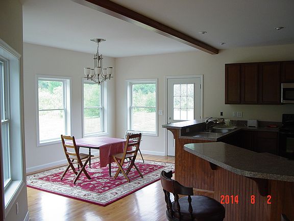 Fabulous open-concept architect designed contemporary cape on 7.38 acres set well back from the road in a quiet, country location. This is essentially a brand new house, construction was started in 2008, completion 2016. Spectacular great room with towering 23' cathedral ceilings, quarter sawn birch floors, and a beautiful stone fireplace. Bright and sunny kitchen with birch cabinets and extensive breakfast bar. Two bedrooms on the first floor have natural oak floors. Large foyer with tile floors and oak stairway leads to a huge master suite on the 2nd floor with space for an office, reading room or den. This unique house was custom-built with energy efficiency in mind: solar passive design, radiant heating, insulated concrete forms foundation and Energy Star windows. Expansion potential in the basement. Farmers porch overlooking fields, picturesque hills and brook trout that traverses the property. Many potential agricultural uses plus hiking, hunting, horseback riding, cross-country skiing on miles of trails on conservancy land behind the property. Abundant wildlife to include deer, grouse, turkeys frequent the property. With more than $420,000 already invested in the property it is a buyer's dream.