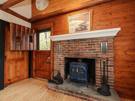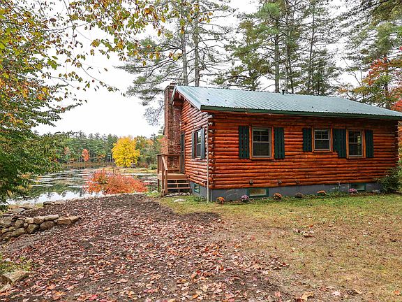 Embrace the enchanting lifestyle offered by this log-style single-family home with 3 bedrooms and 2 bathrooms, showcasing a finished walkout basement, a private boat dock for kayaks and canoes, and breathtaking water views surrounded by a serene wooded oasis. Skylights illuminate the interior. Greylore Farm Pond, a wildlife haven complete with beavers, otters, turtles, herons, kingfishers, and deer. This property provides a captivating backdrop to witness all four seasons, from the icy beauty of winter to the vibrant life of spring, the blooming flowers in summer, and the stunning fall foliage. A sustainably built stone retaining wall offers easy access to the pond, and storage is readily available in the shed. Relax on the deck overlooking the pond and enjoy the warmth of the outdoor fireplace. Beyond a mere house, this property offers a cherished lifestyle, immersed in the beauty of nature throughout the seasons and conveniently located near Concord and Manchester, NH.