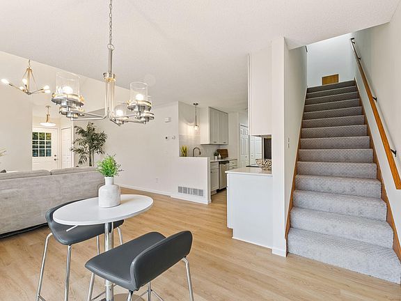 Beautifully updated 3-bedroom, 2-bathroom townhome with a 2-car garage! Enjoy fresh paint, new carpet, and LVP flooring throughout. The main level boasts a tall, open living room with a cozy fireplace, a dining area with a sliding door leading to the patio, and a stunning kitchen featuring brand-new cabinets, countertops, backsplash, and stainless steel appliances, plus a convenient half bath. Upstairs, you’ll find three comfortable bedrooms and a full bathroom. The unfinished basement offers ample potential for future expansion, perfect for adding extra living space or storage. Move-in ready and full of modern charm!