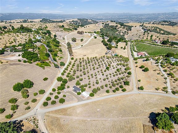 Set in the tranquil hills of East Templeton, this fully renovated Modern Ranch is on a stunning 7+/-acre property, surrounded by almond and walnut grove. The level of quality and craftsmanship within this stick-built 3 bedroom (one without a closet), 2-bath home is telling! Featuring contemporary accents that flow elegantly throughout the home, high ceilings and an open-concept layout, there is even exposed ductwork in the living room for a industrial touch on this sleek design. Some of these unique and high quality finishes include George Nelson bubble lighting, custom "Heath ceramics" tiled hearth, a smooth concrete faced mantel, European vanities, directional recessed LED's and large picture windows/sliders. The kitchen is showcased with contemporary cabinetry and complemented with polished quartz counters and newer stainless appliances. Natural light spills into the spacious living, dining and kitchen area which all afford country views of the surrounding hills, vineyards and orchard. The home also features a generous front deck with adjustable louvered cover for shade and there is a private rear yard, ideal for relaxing evenings under the starry skies. The primary suite includes a walk-in closet, remodeled bathroom and a private deck. The details, decoration and execution is amazing in this home which also has an active Short-term vacation rental license. So, whether you move right in to this turnkey dwelling or use it as your future' ADU while you build out your dream home at the top of the parcel with panoramic mountain and vineyard views, the possibilities here are exceptional!