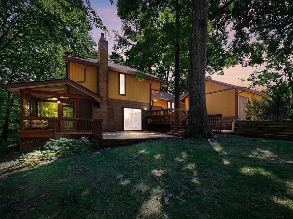 4 thoughtfully designed levels on one of the most beautiful lots (and streets) in Worthington Hills allow owners to enjoy ravine views to the fullest. Multi-level patios, composite decks and a screened-in porch w/ skylights make you feel like you are perched in trees. You will appreciate the architectural details from the moment you walk in the home. The vaulted cedar ceiling is truly unique and ties in wonderfully with additional rough-sawn cedar throughout. Island kitchen is updated with gas cooktop, Corian and built-in fridge. All bathrooms have been updated, 2 have heated floors! The lower-level bedroom (or office) w/ deck access has an adjoining full bath. Additional perks: wet bar in rec room, automatic landscape lighting & irrigation system, backup generator, new AC and newer roof