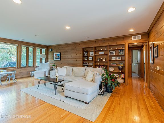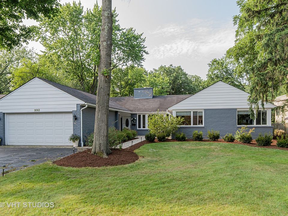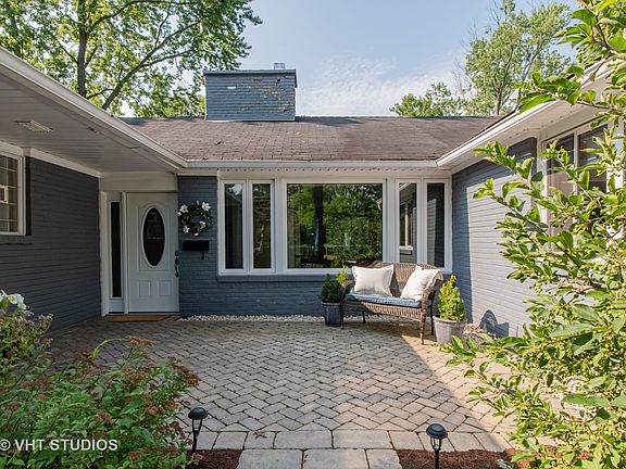 Beautifully updated, bright & sunny, mid-century modern ranch home in a terrific East Highland Park neighborhood! Fabulous open floor plan features a spacious & updated maple & granite kitchen with a large breakfast bar peninsula with stool seating - all open to the bright family room. Enormous living room features hardwood floors, built-in bookshelves, handsome wood planked walls & cozy wood burning fireplace. All baths are newer and neutrally remodeled. All new windows throughout the home (2016) and newer furnace (2018). Spacious bedrooms feature neutral, newer carpeting and terrific closet space. Attached 2 car garage with newer garage door. Gorgeous brick paver front patio and walks. Lovely & lush fully fenced backyard with a generously sized brick paver patio. Tons of recessed lighting T/O, crown molding, cool exposed brick walls, amazing storage space & a warm & cozy feel T/O the home. Conveniently located close to town, train, Ravinia, Lake Michigan - everything! Truly a pleasure to show.