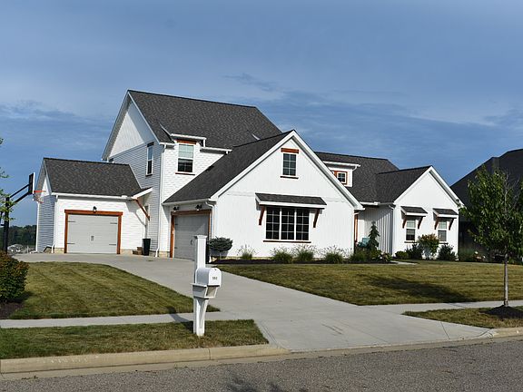 Amazing Custom-built modern farmhouse in Spring Hill Highlands of Green. Built in 2016, 3075 SF on 1st and 2nd floor plus 1236 SF in finished walk out basement, 5 bedrooms and 3 full/ 1 half baths, 3 car garage. One of the best lots in Green with amazing sunset views from your Kitchen, Great room and covered maintenance free 312 SF Timbertech deck. Remarkable open floor plan with custom finishes throughout. Engineered wood floors throughout first floor, gourmet kitchen with commercial gas range, stainless steel appliances, quartz counter tops, pantry with reclaimed door and farmhouse sink overlooking huge back yard. The vaulted Great room and dining room feature exposed barn wood beams. Custom built-in linen cabinets and shelves as you enter the vaulted master bedroom with exposed barn beam and plantation shutters. Large mudroom with built in lockers and drop zone. Upstairs features a vaulted loft/play area with exposed barn beam and custom built-in for toys, games and TVs. Built in lofts in 2 of 3 upstairs bedrooms, a great space for the kids to sleep and read. Finished lower level includes mini kitchen/beverage center with sink and granite countertop. Lower Level includes the 5th bedroom with full bathroom, stamped concrete patio. Zoned HVAC and tankless water heater for energy efficient home. A must see! Call 330-322-4556 to schedule a showing!