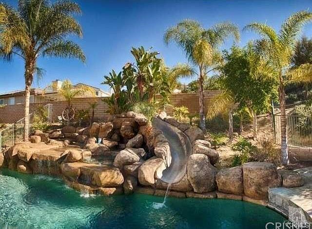 Gorgeous beach entry pool home with water-slide, waterfall seating underneath, spa, a must see, your own private resort. Large RV parking. Over sized backyard with lots of grass and patio area's, fire pit etc. Large living room and family room that opens up to the kitchen. Downstairs has a bedroom with a 3/4 bathroom next to it. Master bedroom upstairs on separate side of guest bedrooms for privacy, Mstr has 2 walk in closets and a large sliding mirrored closet (3 total large closets in mstr) Mstr bathroom with his and her sinks, separate over-sized tub and separate shower. Upstairs guest bedrooms has "Jack & Jill bathroom with double sinks, bathtub and shower. Loft upstairs too. Kitchen granite counters, island, eating area. Garage has a tandem spot for 3 cars or currently used for storage with lots of built-in storage.. One of the largest lots in the area and gorgeous resort style backyard! Huge RV area or room for a RV and a boat. Huge backyard for entertainers and storage. Don't miss out on this beautiful house with the incredible pool/backyard..