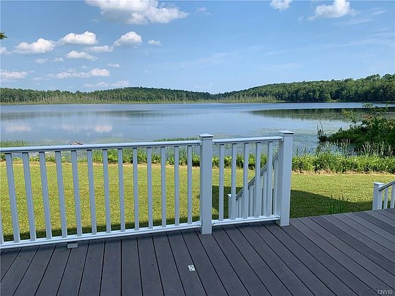 This country property has it all and sits on over 33 acres on the quiet and peaceful North Pond. This spacious yet cozy home offers a large kitchen and living room, 5 bedrooms and 3 full baths for serene country living. Wake up to the picturesque water view right from your bedroom window. Enjoy morning coffee, relaxing, or family gatherings on the large deck overlooking the pond. And don't forget to bring all the toys! The 40 x 50 pole barn provides all of the storage one could possibly want. Less than 10 mins to interstate 81 and 30 mins to Syracuse. This is a rare find...don't miss it!