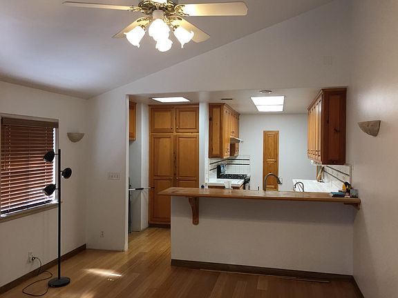 Covered patio in peaceful backyard., washer/dryer and refrigerator included, garage and driveway parking, low maintenance landscape. Fruit trees. Master bedroom is 13x18. Master bath has jacuzzi tub. Hardwood floors. Knotty pine kitchen cabinets. R/O and whole house water filtration. Water, trash and gardener included.