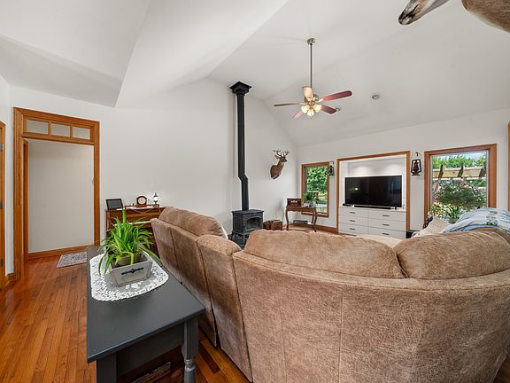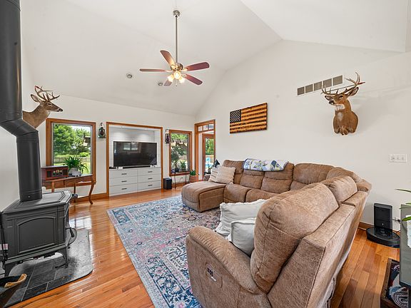 This gorgeous, impeccably maintained brick-front ranch offers a spacious semi-open floor plan, highlighted by beautiful hardwood floors, 9' ceilings, and custom trim throughout. The expansive kitchen features abundant cabinetry, generous counter space, and a large walk-in pantry. This home is perfect for everyday living and entertaining or cozy up on cold nights by a wood burning stove. Upstairs, you'll find three generously sized bedrooms. The primary suite boasts dual vanities, a whirlpool tub, and ample closet space. Wouldn't you love a finished basement? This one is stunning! Complete with hard surface flooring, an additional bedroom with a sitting area, a large bathroom, and expansive recreational and family rooms ready for daily living or hosting holiday gatherings with an electric fireplace. Walk out to a fully fenced in backyard oasis! As you walk out the back door, you step onto a large patio with a pergola, a 16'x31' inground pool, a gazebo perfect for taking a break from the hot sun, a seven person hot tub, and a large shed for storage! A heated 3-car garage and nicely landscaped yard with a concrete driveway complete the package. THIS HOME IS ALSO BEING SOLD WITH AN ADDITIONAL .87 ACRE LOT WITH A PLACE FOR A HOME VEGETABLE GARDEN! This home is a must see! Schedule your showing today before it's gone!