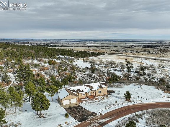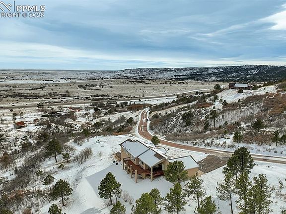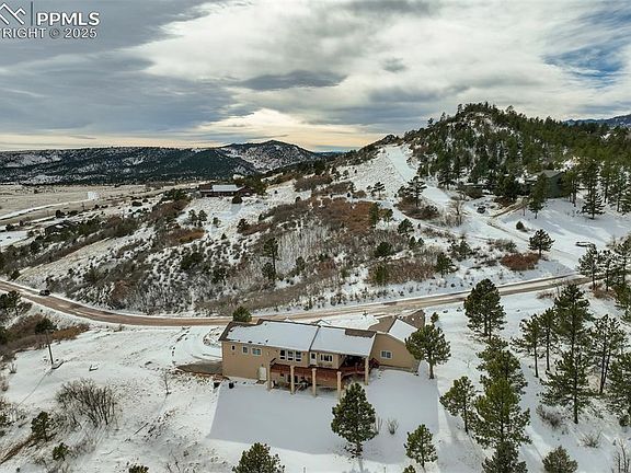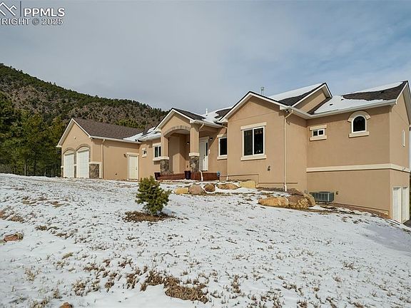A peaceful and private 4 Bed, 3 Bath, 4 Car RANCH with 2 ATTACHED 2-Car Garages. Situated on 5.32 ACRES this home was thoughtfully designed for true MAIN LEVEL LIVING with an open and bright floor plan, large light-filled windows, a wrap-around deck, and it has a WALK-OUT basement. It is conveniently located close to town with lovely views of the foothills & plains. The main level has a large living room that is open to the dining area and kitchen; primary bedroom and bath with double sinks, a stand-alone shower, and walk-in closet; second bedroom (currently used as an office); full bathroom; laundry/mud room with access to the main level's attached two-car garage. The kitchen has Corian countertops, a large kitchen island, pull out shelves, large pantry, stainless steel appliances, propane gas stove top & cherry cabinets. Walk-out onto the large wrap around deck with a covered area and take a look at the incredible views! The lower level has a large family room with a kitchenette, including a sink, refrigerator, butcher block countertop & cabinets. The third and fourth bedrooms are located on this lower level, plus a bathroom with a shower. It has a walk-out to the back patio, a second laundry room, and the entrance to the second two-car garage. The lower level could be great for multi-generational living. It has AC, a stucco exterior, walnut laminate floors that extend into the living room, dining room & kitchen, a tiled entry, covered front porch, humidifier on furnace, carpeted bedrooms, and the lower level family room is LVP. The lot has been well mitigated and the home includes a 9 KW multi-fuel generator with propane hook-up that can run the entire house & well. This home has quick commutes to Colorado Springs, Penrose/Florence, Pueblo or Canon City! And it’s only 8 minutes to Cheyenne Mountain State Park with trails for hiking & biking and 10 minutes to Aiken Canon for hiking. This home is the perfect Colorado Retreat!