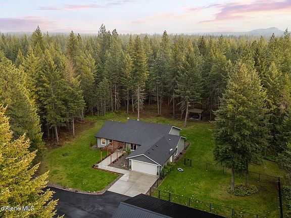 20 Acres! Here's your chance to own 20 private acres — with the option to subdivide. Whether you're dreaming of building more homes or just enjoying the space for yourself, this property gives you flexibility and room to grow. Instant equity. The 1,918 sq ft home includes 3 bedrooms, 2 bathrooms, and an office — great for working from home or extra living space. The main living area is bright and open, with views out to your own peaceful, park-like setting. Outside, the land is beautifully maintained with mature trees, lawn space, fenced areas for pets, a sprinkler system & a gazebo tucked into the trees. The large 30x48 shop provides plenty of space for projects & storage. This is the kind of property that doesn't come up often. With land, privacy, and options, it's a smart investment & a special place to call home. Located near Spirit Lake, State land & Schweitzer Mountain. Come walk the property & imagine the possibilities today!