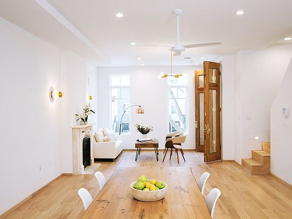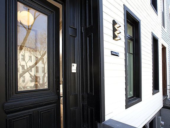 Presenting 990 Hancock, located in the heart of Bushwick, Brooklyn. Nestled on a tree lined street between Broadway and Bushwick Ave., 990 Hancock's convenience is second to none, with everything you need mere walking distance away. The property was designed and built with space and innovation in mind, leaving the owner with limitless possibilities to arrange the area to their liking. Not a single square foot went to waste, seen by the customer shelving in the home office space beneath the stairs, the wide open family living area, the large bathrooms and kitchen and the abundance of storage space throughout the house. The resulting bright and airy design of the house provides for a comfortable and modern lifestyle. The large living and dining areas in the owner's duplex boast high ceilings, two beautifully restored fireplaces and a half bathroom. In the kitchen, German Nobilia cabinets provide ample storage atop a custom-made Caesarstone countertop and backsplash. The state of the art appliances installed include a Liebherr refrigerator, a Bertazonni stovetop and hood, a Sharp drawer microwave and a Miele dishwasher. The kitchen leads outside to a wooden deck with glass railing which overlooks the wood fenced garden. Built in LED lights will guide you up the gorgeous, custom made oak staircase to the second floor. The spacious master suite is paired with a bathroom that features individual vanities with custom custom mirrors, floor to ceiling tiles, a stand alone tub and a separate Japanese style bathroom. The rooms are linked by a large walk in with California closets. The other two bedrooms on the third floor also have California closets, ceiling fans, recessed lighting and a built in sound system. There is also a separate linen closet and a full-size washer and dryer on the third floor as well. Accessible by the owners only, the basement has separate mechanical rooms, a large half bathroom and plenty of space for a family gym or den. The large, two bedroom rental apartment was also given special care. A u shaped caesarstone countertop with a separate pantry and fridge area make this a great income earning apartment. Camera security and stereo sound is wired throughout the home and garden, making 990 Hancock an excellent opportunity for a luxurious and modern home in the heart of Brooklyn.