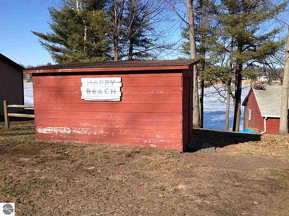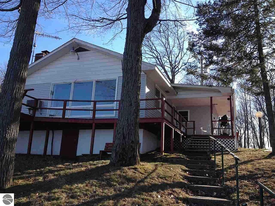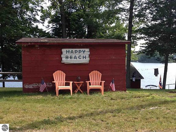 Excellent location for this 2 bedroom, 1.5 bathroom cottage/house. This was a single wide mobile home until a large addition was added on years ago. Beautiful, large stone fireplace (Nat. gas) in the living room. Living room also has 3 large front windows for spectacular views. Tongue and groove walls. Separate dining room. Excellent views from all living areas. Partial walk out bsmt. where laundry is located. Huge corner deck. 12x24 separate bunk house for additional sleeping space. Terraced and steps down a gentle slope to the waters edge. Dock and pontoon included. This property is 2 lakefront lots, with a possibility of a building site on the 2nd lot. Seasoned fire pit for those evening camp fires. Start packing to enjoy this summer at your own cottage!