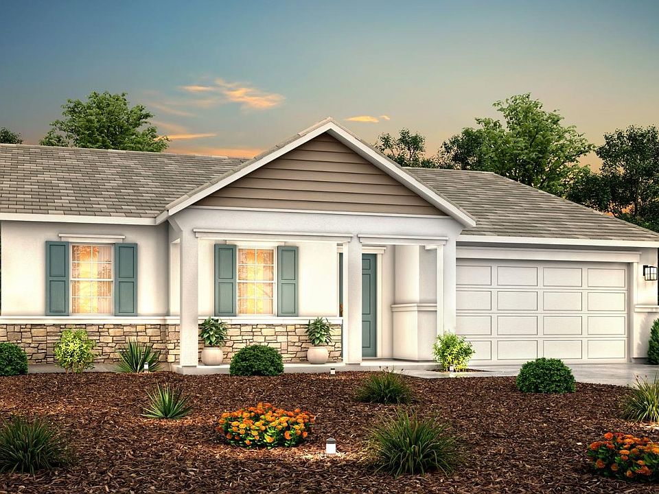 The Sienna provides over 2,200 sq. ft. of living space in a single-story home. The entrance offers direct access into a bedroom and delivers direct through-views into the great room. Ample light floods the space through large windows and a sliding glass door which provides access to the large covered patio. The kitchen addresses the great room and gains full visual access to the spacious media wall. The kitchen nook can accommodate up to a six-person table. Off the main entry hall, two bedrooms share access to a centrally-located hall bath, as well as a large coat closet. The Primary Suite, accessible from the great room, is tucked at the rear of the home, a private retreat away from the additional bedrooms at the front of the home. The en-suite bath features dual vanities, a convenient linen closet, and a compartmentalized lavatory for additional privacy, and the spacious walk-in wardrobe offers room to spare. This home is currently under construction, and features the following options and upgrades: Upgraded gray cabinetry Upgraded white quartz countertops Hard surface flooring throughout main living areasLocated on lot 62 at Monarch by Century Communities