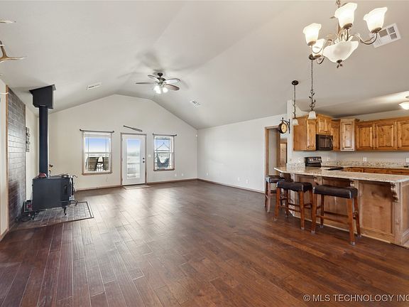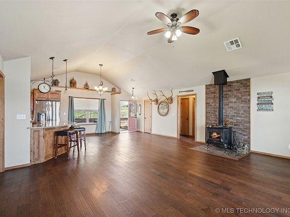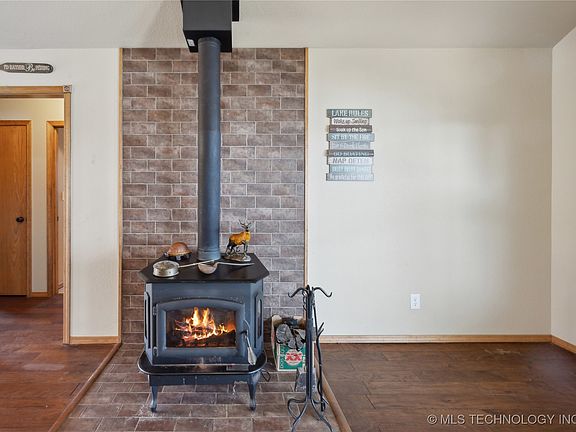 Welcome to your private lakeside retreat, tucked away from the world yet just 45 minutes from Tulsa or Grand Lake! This charming 3-bedroom, 2-bathroom home offers limitless potential. Upon entering, you’ll be welcomed by an open-concept kitchen, living, and dining area with vaulted ceilings, all offering stunning views of 180 feet of pristine waterfront. The updated kitchen features sleek granite countertops, brand-new stainless steel appliances, and a split floor plan that maximizes space and privacy. The master suite is a true sanctuary, complete with a spa-like bathroom featuring a separate whirlpool tub and an expansive walk-in closet.