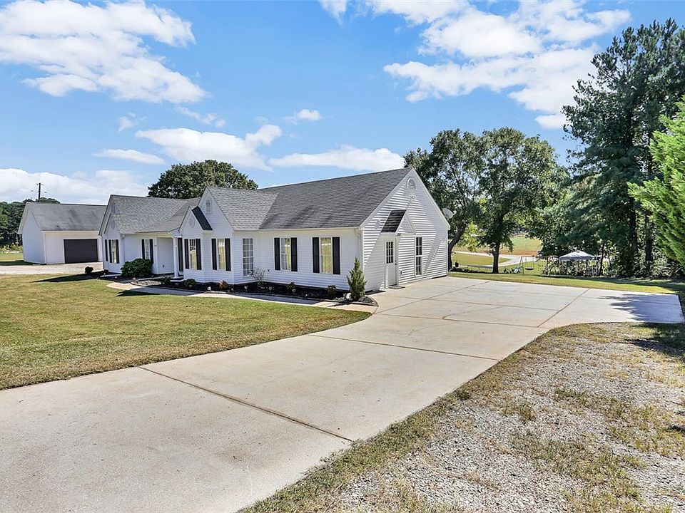 Beautiful, immaculate 4 bedroom ranch home with 2.5 bathrooms. LTV 6" planks flooring through out. Spacious living room with a gas fire place. A den area located when entering from the concrete drive way door entrance. The kitchen features a sit down counter top bar with bar seating, farm sink and all appliances in place. Dining room located across from the bar with back yard views. The laundry room is located next to the kitchen. The split floor plan features a spacious master bedroom with walk in closet. The master bathroom has a large tiled walk in shower, jetted garden tub and vanity. The other three bedrooms are located at end of the hall way where one bedroom could be used as a bonus room. The level 1.10 acre yard features a detached garage with a second drive way entrance. The backyard has a patio with playground and pet kennel. Buyers to verify everything of importance. Close to town, shopping, dining, medical, close to everything.