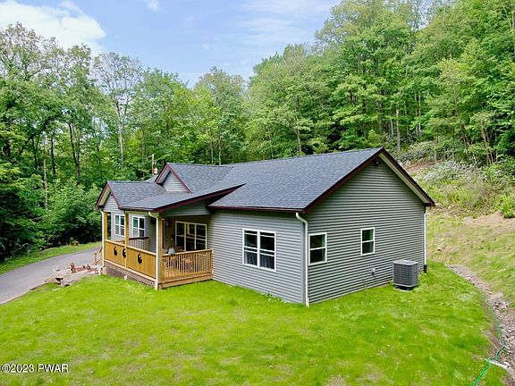 BRAND NEW custom Ranch on nearly 3 wooded acres. No community with great location between Hawley & Honesdale. This lovely home features 3 bedrooms, 2 full baths, spacious living & dining & sunroom, plus a beautiful kitchen with all stainless appliances, granite counters oversized cabinets and large pantry. There is a Environmentally controlled crawl space for dry storage. The long paved driveway offers privacy and leads to a 2 car garage and extra parking. Relax on the covered front porch or the back yard patio and enjoy this wonderful setting surrounded by flowering Mountain Laurel (our State flower)