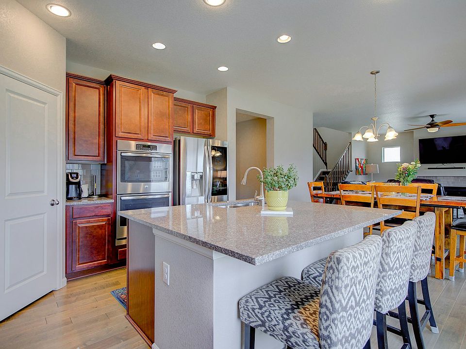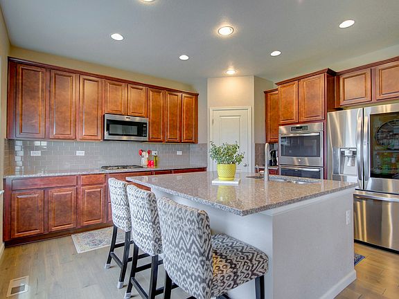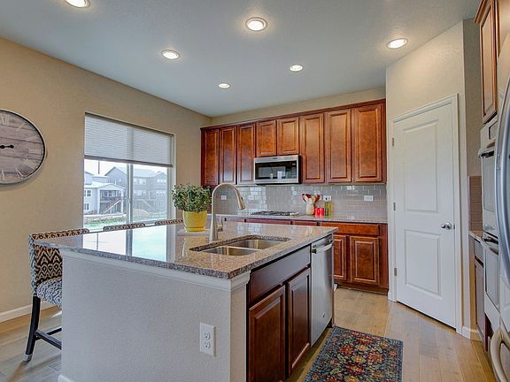 Backing to Open space, get ready to fall in love with this beautiful home in Terrain! Upgraded kitchen with quartz counter tops, gas range, double ovens, walk in pantry, and center island will be sure to delight the chef in your home! Upstairs you'll find 4 bedrooms, including a fantastic Primary suite that is private and overlooking the green belt. Equip with a 5 piece en-suite bathroom with soaking tub and walk in closet. 3 secondary bedrooms and a full bathroom along with a spacious loft that for an additional living space and has plenty of rooms for everyone. Your sun filled Walk-out basement with great room, wet bar /full kitchen with wine chiller, ice maker, full refrigerator and kegerator. Additional non-conforming bedroom/ home gym and 3/4 bathroom provides you the perfect space you have been dreaming of. AV equipment, and full automation hardware and software along with mounted TVs in the basement are included with the sale of this home. This home truly has it all! Located close to downtown Castle Rock, hiking, biking, and all of the great amenities that this community has to offer.