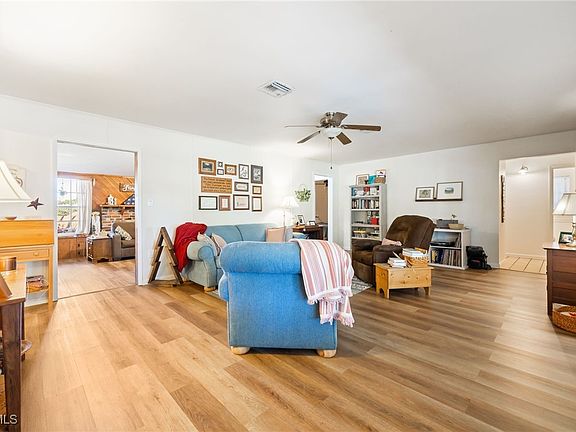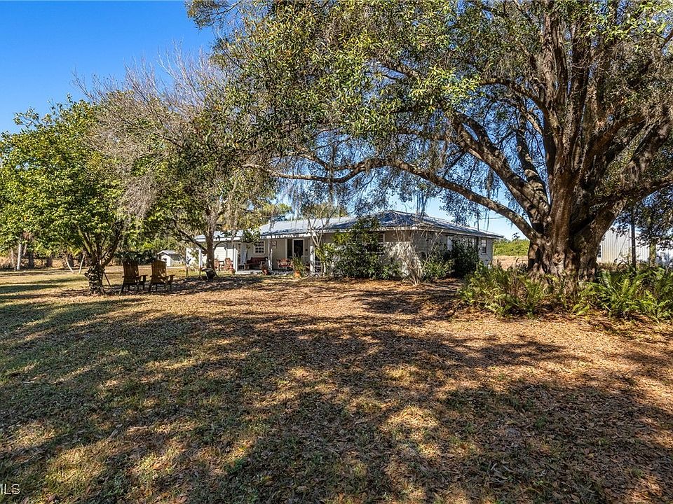 Take a Step back into the tranquil sounds and feeling of Old Florida. Situated far away from highways you will instantly feel at ease being surrounded by cow pastures, wooded area and open land. Enjoy an expansive front porch as you watch the deer and turkey passing through the beautiful oak hammock in the front yard. Step inside to a spacious living room with updated flooring and plenty of windows to allow natural lighting to light your way. The functional country kitchen allows for plenty of room for preparing meals for large gatherings. A small breakfast area and dining room are both relaxing allowing for you to enjoy your mealtime together. Three bedrooms and 2 baths make this for a great family home. Behind the living room you will find a den, TV room, game room or The Man Cave, perfect for any size family. Outdoors is a large 30 x 40 steel barn with electricity. There is also an open carport on the back side of the barn measuring another 15' out. A small teds shed in included equipped with electric. A 4" well was installed in 2018, The AC unit manufacture date is 2022. The metal roof is 20 to 30 years old. This home is located "On The Ridge" in Felda, No need for Flood Insurance! This home on Acreage in Felda is a rare find, Schedule your showing today!