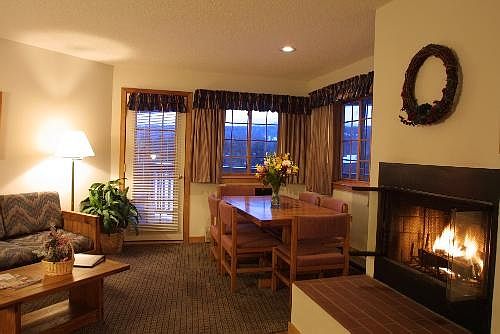 Our two bedroom, two bath apartment located on the top level of our Mountain View building are fully furnished and equipped. Full size kitchen with dishwasher and microwave, dining area with table that seats six, living room with wood burning fireplace and queen sofa sleeper. Master bedroom with a king size bed, single person jet tub in the master bathroom. Second bedroom has two twin beds, standard full bathroom and its own separate entrance. Each apartment has two balconies with direct mountain views. Month to Month