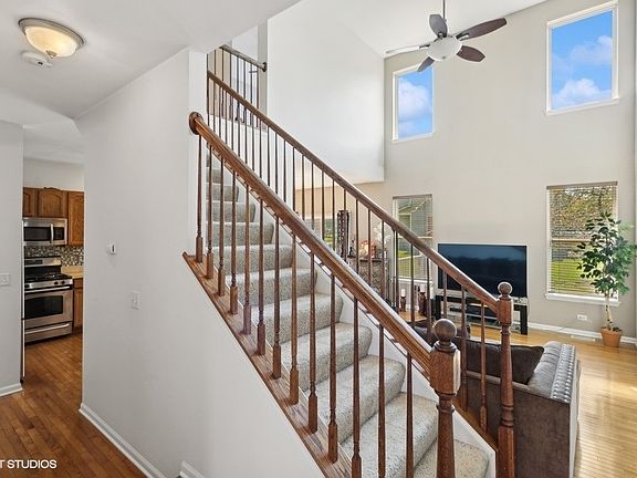 Picture Perfect! From the moment you arrive, the fabulous curb appeal and the impressive floorplan set the stage. First floor shines with abundant natural light, soaring ceilings, natural hardwood floors, stainless steel appliances and generous rooms. Laundry/mudroom as you enter the home from the two-car garage. Powder room, eat-in kitchen and dining room complete main level. Upstairs includes primary suite with ensuite bath, second bedroom with generous closets, hall bath and loft for in home office /craft/gaming space. Basement includes room for entertaining family and friends, full bath and generous storage space. Large deck in the back is perfect for grilling and enjoying time with friends and family. Convenient location to dining, entertainment and major expressways. Welcome Home!