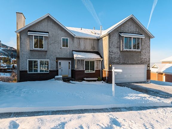 Tucked away on a quiet street overlooking the valley and wooded green space, this two-story home features 2 beautiful decks to enjoy the view of the lake, the mountains, the valley and the neighborhood deer. The oversized upstairs features a lovely master suite with separate shower and jetted tub and a walk-in closet, 4 additional bedrooms, a full bath and the conveniently located laundry room rounds out the upstairs floor. One of these bedrooms has been used as a sewing/craft room. The main floor boasts an executive office, a remodeled chef's kitchen complete with double ovens, a gas range and semi-formal dining opening to a great room with a fireplace and you can walk out to your spacious trex deck to enjoy your views. A formal living room and formal dining room complete the main floor. Downstairs has another bedroom/exercise room and the rest of the basement is ready for you to finish to suit your needs. This is a walk out basement with another big deck. RV Parking next to the 2 car garage and the shed. Secondary Weber Water. The roof is 10 years old, the a/c and water heater were installed in 2013, the upstairs furnace is 10 years old, and the other is original.
