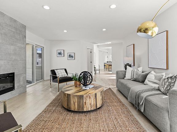Elegantly remodeled in 2019, it offers modern comfort and thoughtful design throughout. The open-concept layout showcases soaring 10-foot ceilings in the living room, engineered hardwood floors, and abundant natural light. The sleek kitchen features quartz countertops, quality white cabinetry, and stainless steel appliances.