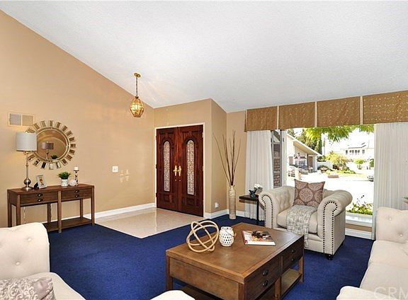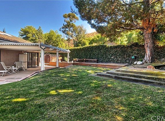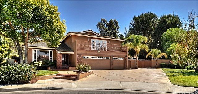 Lush, mature landscaping and the serenity of a quiet cul-de-sac of only 4 homes set the backdrop for this beautifully maintained two-story residence in highly sought after Anaheim Hills Estates. Gorgeous Koa wood double entry doors with beveled glass inlay open into sunny interiors enhanced by vaulted ceilings and a thoughtful floor plan to maximize space and flow. A downstairs bedroom featuring a huge walk-in closet is perfect for guests or in-laws. Main living spaces include formal living and dining rooms, a game room with a wet bar and unique see-through fireplace, a large laundry/craft room with utility sink and built-in desk, a family room with a stunning floor to ceiling stone fireplace and sliding door access to a lovely side yard with a large covered patio, grass area, mature trees, raised redwood deck, charming area for a pond and RV parking. The spacious kitchen offers abundant storage-enhancing cabinetry, a triple sink, sub-zero refrigerator, appliance garage and garden window overlooking the fabulous back yard with sparkling pool, spa and patio, perfect for relaxing and entertaining alike. Upstairs awaits three additional bedrooms, including a master suite offering a separate retreat area, private en-suite bath and beautiful French doors opening to a romantic balcony. Offering a 3-car garage plus ample driveway/RV parking, no HOA, located within the attendance area of highly ranked OUSD schools, close to great shopping, dining, sports venues and