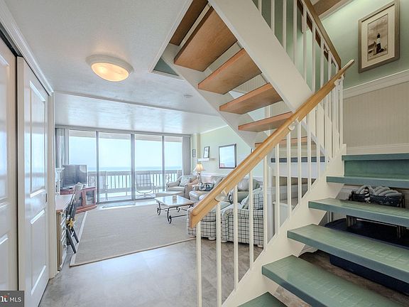 Spectacular 180-degree views of the Atlantic Ocean in this turn-key 2 Bedroom, 2 Bath, 2-story, Oceanfront Condo, with both Ocean & Bay balconies. Being offered fully furnished! Settle into this oceanfront residence or purchase this property and start earning rental income. This bright & breezy unit has a soothing feel and includes all the amenities! Enter to the upper level of this condo, which hosts the primary bedroom and a full bathroom. Wake up every morning with stunning views of the ocean from your private balcony; it doesn’t get better than that! Down the steps to the lower level, you will find the ideal floorplan with adjoining kitchen & living room & private ocean front balcony, with the ocean as your backdrop. The eat-in kitchen has abundant cabinet space and plenty of space for your dining table. Completing this level is the 2nd bedroom with another private balcony and views of the Bay and another full bathroom. This condo has never been rented and the current assessment has been fully paid! Bonus features of this unit include a central vacuum, beach locker, reverse osmosis in kitchen sink, washer/dryer, and more! Amenities of this property include an indoor pool, fully equipped gym, community room, expansive beach deck, sauna, outside showers, trash shoot, pet area, beautiful lobby, rental office (should you choose to rent your unit), service elevator and two lobby high-speed elevators, and parking lot. The condo fee includes cable and all the amenities including on-site manager and security. Do NOT let this furnished Ocean City dream property pass you by! Be sure to view the virtual tour and floorplans and schedule a showing today!