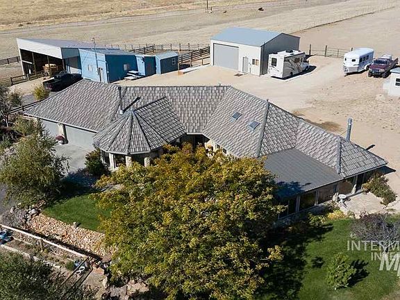 ELEVATED DESTINATION! Horse Property! 10 acres perched above coveted Lucky Peak Reservoir. Views for miles - truly a priceless feature very few have the pleasure of having. Single level beauty w/chef's kitchen, beautifully updated tiled bathrooms, master suite w/access to cozy "sunroom/den" w/propane stove, loads of windows that bring the outside in. 900 sf custom built SHOP, horse barn, & additional MIL apartment. Gorgeous grounds w/water feature, garden & wildlife. YOUR OWN PRIVATE IDAHO!