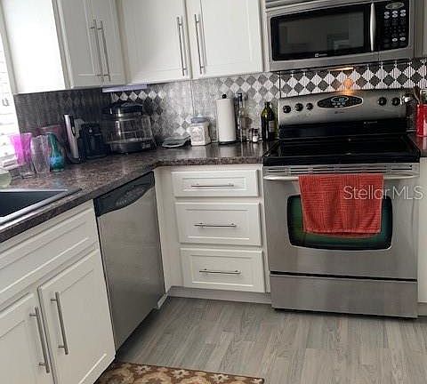 Fantastic price for this 55+ FIRST FLOOR ~ END UNIT! Make an appointment to see this beautifully updated 2 bedroom 2 bath condo with water access to the Gulf of Mexico and just under 1400 sq ft. If you are looking for a condo with an Updated kitchen...This is it! Gorgeous counter tops, STAINLESS STEEL Maytag appliances, shaker style cabinets, built in microwave, dishwasher and a double door refrigerator with all the extras. As you enter the front door, you will see the open floor plan with natural light, a gorgeous fireplace and a lighted dry bar for entertaining. The laminate wood look flooring is throughout the dining room and living room. Want huge bedrooms? The master bedroom will accommodate and king size bedroom set and the second bedroom has ample space. Both bathrooms have been updated. Enjoy your air conditioned enclosed Florida room year round. Outside your font door is your carport and locked storage closet. Eagles Point features a beautiful HEATED POOL to use year round with an active clubhouse. Whether you like swimming in the pool, or shooting pool, ping pong or visiting the library in the clubhouse you have everything just a few steps from your front door. While at the pool you can see the canal, the boat dock and the historical Eagles nest. Venture across the yard to the boat dock and watch the dolphins, manatees and the fish jump! Easy Gulf access, kayak launch, the fishing pier are just a few of the amenities the owners enjoy at this quiet one of a kind complex. Florida living at its best just minutes from the Suncoast Parkway and the beach! Priced to sell quick. Call the listing agent today for your private tour.