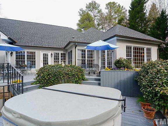 Immaculate 2 acre wooded estate home located in pristine North Raleigh location near top private school and hospital. 15 min to RTP & RDU. Over $300K in upgrades! Elegant designer features such as marble fireplace. Gourmet kitchen with center island, 6 burner gas cooktop, & double ovens. Master suite offers picture window along with custom designed bathroom with vaulted ceiling & skylight. Stunning 2 tier deck with hot tub overlooking the lush backyard. Full finished walk out basement. City Sewers!