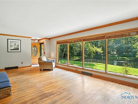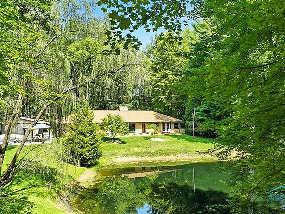 SOLID all brick Monclova ranch w full basement on over 3 private wooded acres - PLUS public water, natural gas, pond & 40x30 pole barn! Bright & airy Living Room boasting hardwoods, fireplace & picturesque pond views. Fully equipped eat-in kitchen w tile floors & French Doors leading to deck. Finished basement incl. Den & Rec Room w 2nd fireplace & bonus workshop w bench & pegboard. Pole Barn w electric, concrete & heat for your toys/hobbies/storage! Whole house generator! New roof w tear off, gutters/guards, furnace, A/C & water heater '20. New Septic '17, most windows '18. Bsmt carpet '25.