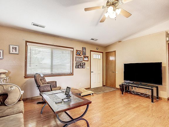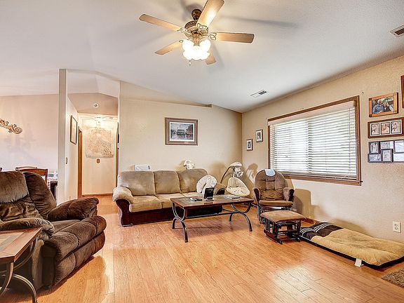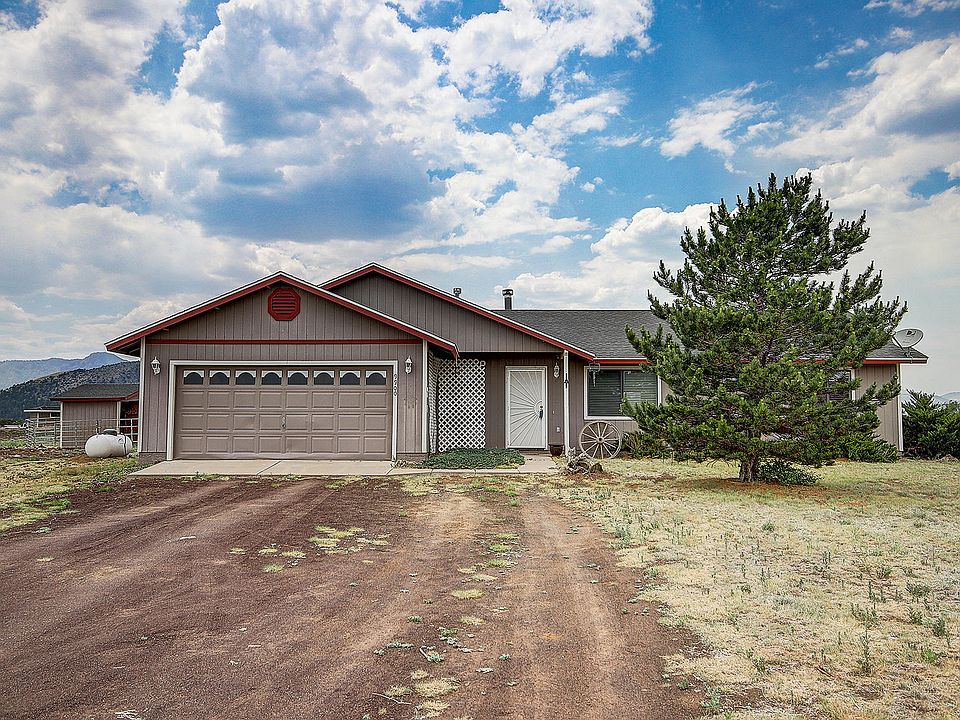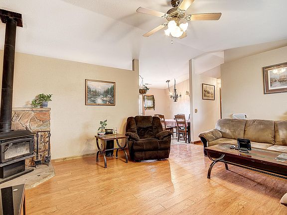 Looking for a single level home with incredible views and a fenced yard for the kids. This split floor plan has a wood burning stove that heats whole house. And... a great set up for your horses with a stable, corrals and a hay storage shed outside the fenced rear yard.