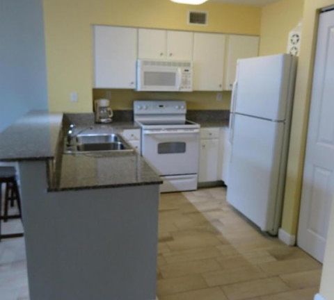 Very desire-able 1st floor furnished condo with gorgeous blonde tile through the kitchen, dining and living room and the bedrooms feature carpet. The kitchen has granite counter tops with a breakfast bar and the living room boasts extra high ceilings, flat screen TV's and this condo even has a cozy bunk nook for the kids! This is a fantastic condo to enjoy or to use as a rental. Just walk out the sliding door to your balcony and right onto the luxurious pool deck. No waiting on the elevator ... and this condo comes with an assigned parking space too! It doesn't get better than this. The setting is tropical elegance and leisurely style. The Shores of Panama offers resort style amenities including a multi-million dollar 13,966 sq ft gulf front lagoon pool