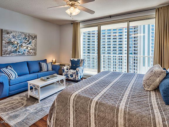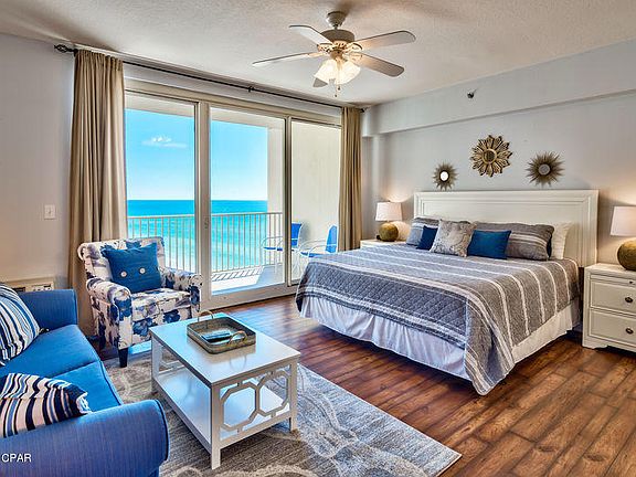 Dreaming of some beach time you can look forward to in your future? This affordable condo is your answer and has STRONG Rental Income of $20,100 Mar24-Jul31, 2018 to offset HOA and ownership expenses! This spacious studio with nice furnishings and coastal decor is ready for relaxing or renting. Private balcony is full of sunshine and ocean breezes. Enjoy tropical views of large pool area and white sandy beaches of the Gulf of Mexico. NEW: AC; Paint; Balcony Furniture; Bed Set; Cabinet Doors and More. Beachfront Amenities, Pools, Hot Tub, Sun Decks, Tiki Bar, Beach Service. Indoor Spa, Gym, Game Room, Lobby Store. Covered Portico Entrance and Parking Garage keep you out of the Florida elements. Convenient central location to Dining, Shopping and Entertainment. Ride the Trolley to Pier Park!