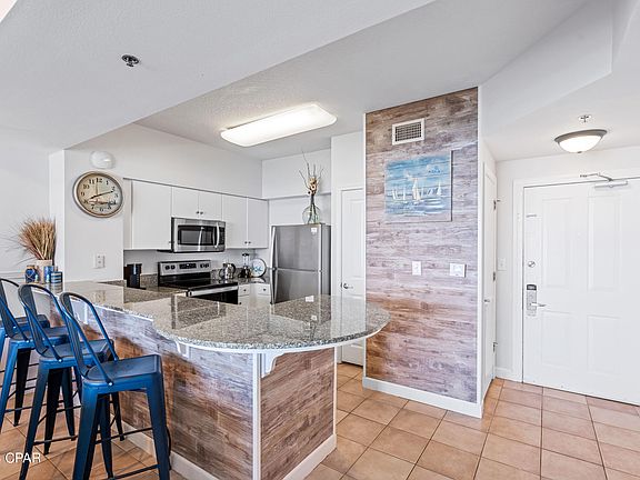 Step into your dream beachfront investment property at the Shores of Panama! This stunning one bedroom with a separate bunk room and two full bath condo boasts breathtaking views of the Gulf of Mexico. With over $40,000 in rentals already on the books for 2023, this condo is the perfect investment opportunity for those looking to maximize their returns. As you step inside, you will immediately notice the sleek and modern stainless steel appliances in the fully equipped kitchen. The living area is furnished with brand new furniture and coastal decor, providing a serene atmosphere to unwind after a long day at the beach. The condo has been freshly painted, creating a bright and airy ambiance throughout. The master bedroom features a comfortable king-sized bed, while the bunk room is perfect for children or guests with a large bunk beds featuring a queen on the bottom and twin on top. Enjoy your morning coffee or an evening cocktail on the private balcony, where you can soak up the stunning views of the Gulf of Mexico. Not to mention that this unit has a deeded parking space that conveys with purchase. As a guest of the Shores of Panama, you will have access to a range of amenities including a lagoon-style pool, a hot tub, a fitness center, and a spa. The property also features on-site dining options, so you can indulge in a delicious meal without having to leave the resort. Don't miss out on this amazing investment opportunity to own a luxurious beachfront condo at the Shores of Panama.