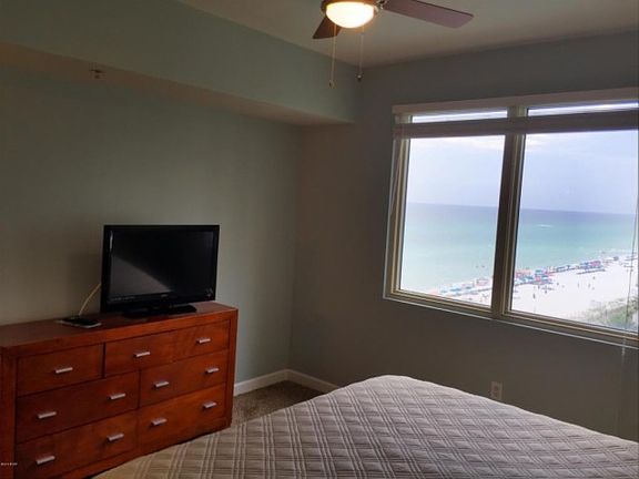 Some might call this Tevye's unit because it has both sunrise and sunset views! The bedroom in the front of the unit has endless gulf views looking eastwardly down the coastline where you wake up to beautiful sunrises. The bedroom in the rear of the unit overlooks the gulf facing west where some of the best gulf sunset views will captivate your attention! This unit or stack boasts of being one of the largest per square ft in the Shores of Panama. The unit conveys with parking space 827. This well-appointed unit has a bunk room, owner's closet, laundry room and all bedrooms are on suite. This unit can easily sleep 10 and must be among the finest on the beach with the Sunrise and Sunset vantage points. The setting is tropical elegance and leisurely style.