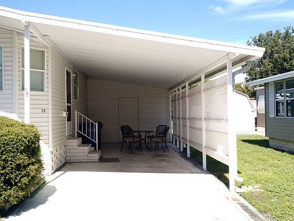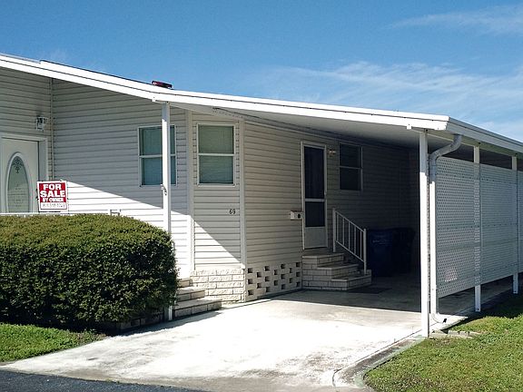 RECENTLY REDUCED! This very impressive home is one of the few newer homes available in the community. With 2 bedrooms, 2 baths and upgrades this 1996 Palm Harbor home is available and ready for a new owner. At first sight you will notice the lush landscaping and tasteful curb appeal. The vinyl siding, shingle roof, long carport with room for a sitting area or screened patio, shed with window A/C and plenty of room for a workshop, front porch and a brand new A/C unit in 2018 are exceptional exterior features. The front entrance takes you directly to the living area with the side entrance leading to the front kitchen. This area gives you an open and airy feel. The kitchen is spacious with an abundance of freshly painted cabinets. New wood look vinyl flooring has also been installed. For a more formal dinner the dining is just off of the kitchen. A sizable 11x21 living area is light and bright with numerous windows, new carpet and a glass front door. In the hall is a closet with the washer and dryer. The guest bath is also in the hall and has a shower and tub along with wood look vinyl flooring. The rear of the home has the guest bedroom which is an ample size and has a full exit door and new carpeting. The master is a 12x12 with new carpet, wall to wall closet and an en suite bath with new vinyl flooring and a walk-in shower. Drywall, six panel doors and a vaulted ceiling also adorn the home. This appealing home is priced to sell at $78,900 which also includes the share.