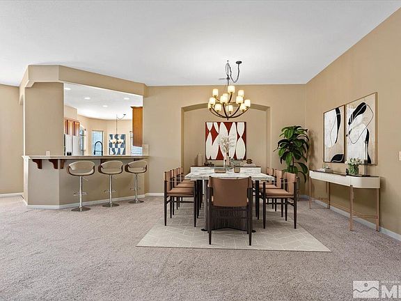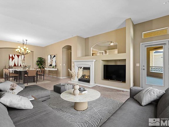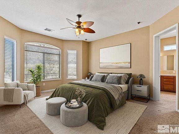 This townhouse offers a luxurious and convenient lifestyle with stunning views of the Sierra Nevada mountains. Step inside to discover an open floor plan flooded with natural light, perfect for entertaining guests. The primary bedroom is a welcoming retreat featuring a spacious walk-in closet, direct access to the covered patio, a luxurious bathroom with an expansive soaking tub and walk-in shower equipped with body sprays., The other two bedrooms also offer ample living space, each boasting large walk-in closets with built-in cabinetry. Enjoy breathtaking sunsets from the covered patio that overlooks the majestic Sierra Nevada mountains and Mt. Rose. The townhouse includes an oversized garage with an epoxy floor, ensuring both visual appeal and easy maintenance regardless of the season. Just a few steps from your front door, you'll find the opulent 20,000 square foot clubhouse of Fleur de Lis. This community is adorned with meticulously landscaped grounds featuring an infinity waterfall cascading into a koi pond, meandering walking paths, multiple ponds, two outdoor pools, and a hot tub. Indulge in the amenities of luxury living including a state-of-the-art workout facility, movie theater, wine storage and tasting room, library, meeting rooms, and a billiards/game room. A covered patio with two barbecues completes the outdoor experience. The location is superb with the newly opened Southeast Connector offering quick access to Reno/Sparks and beyond. The HOA covers essential services such as Wi-Fi, daily front door trash pickup, exterior maintenance, landscaping, and snow removal. This townhouse is conveniently located, being a 40-minute drive from Lake Tahoe, 24 minutes from Mt. Rose Ski Area, 16 minutes from downtown Reno, 2¼ hours from Sacramento, and 3½ hours from San Francisco. This is an exceptional opportunity to embrace a lifestyle of luxury and convenience in a breathtaking natural setting. *** ROOM SIZES *** *** Primary Bed 21' x 15'9" *** *** Primary Bath 15'5" x 12' 7" *** *** Walk In Closet 9'5" x 7'5" *** *** Living Room 16'3" x 16' 9" *** *** Formal Dining 18'3" x 17'3" *** *** Kitchen 12' x 16'8" *** *** Dining 12' x 10'1" *** *** Bed 2 14' x 13'4" *** *** Walk In Closet 8'8" x 5'3" *** *** Bath 2 11'2" x 8'1" *** *** Bed 3 10'11" x 10'11" *** *** Additional Closet/Storage 10'7" x 5'1" *** *** Laundry 9'4" x 5'11" *** *** 2 Car Garage - 23'2" x 19'4" ***