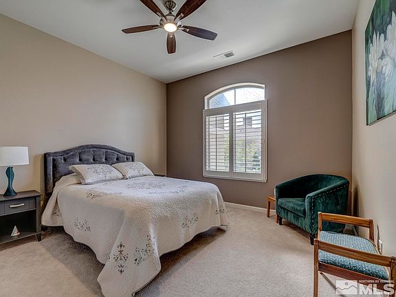 Your sanctuary awaits in the prestigious Fleur De Lis complex! This meticulously maintained townhome offers a haven of comfort and style with 2 spacious bedrooms, 2 elegant bathrooms, and an attached 2-car garage. Enjoy stunning mountain and waterfall views from the sunlit living area, enhanced by an upper-level location that bathes the space in natural light. The open-concept layout, modern kitchen, and serene balcony make this home perfect for relaxation and entertaining., Experience breathtaking sunsets from your spacious covered patio, complete with a fan and patio shade panels. Overlooking mature landscaping, water features, and views of the Sierra Mountains, Mt. Rose Ski Area, and stunning waterfalls, this outdoor space is a true haven. The oversized garage boasts fresh paint and a new epoxy floor for low maintenance and easy cleaning. Enjoy modern conveniences with a new doorbell and video system, and ceiling fans and lights controlled by remotes. All new bathroom fixtures add a touch of elegance to this beautiful home. LOCATION, LOCATION, LOCATION is a major factor in this luxury community. Only a few short steps from the front door, you arrive at the lavish $3 Million, 20,000 square foot clubhouse with all the amenities you expect from luxury living. Welcome to Fleur de Lis the $75 Million, 40 acre luxury townhome development located in South Reno! You and your guest will be greeted by a manned security gate that welcomes you to a community that truly has everything. From the meticulously landscaped lush grounds, an infinity waterfall that spills into a large koi pond, meandering walking paths, multiple ponds, two outdoor pools and a hot tub this community has it all. Not to mention the state-of-the-art workout facility with yoga/Pilates room, movie theater, temperature controlled wine storage and tasting room, library and conference room, meeting rooms, billiards/game room, a community kitchen, entertainment hall with a grand piano, a covered patio with two barbecues, exterior firepit, you will find yourself with plenty to enjoy. With the new Southeast Connector open you will have quick and easy access to anywhere in Reno/Sparks. The HOA covers; wi-fi, front door daily trash pickup, exterior maintenance, landscaping & snow removal.