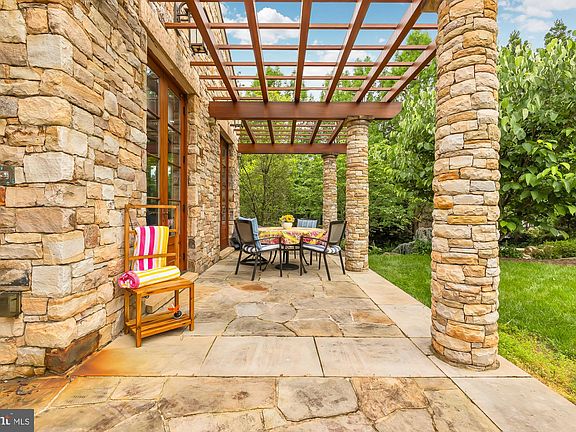 A residence reimagined; A short stroll from Potomac Village, nestled on just under 1 acre of magnificently designed grounds by Lila Fendrick, sits a Tuscan Villa. Originally designed as a pool house by Ann Decker, this 3 bedroom 3 1/2 bath Sandy Spring Builders renovation won the 2021 “MBIA gold custom home renovation award.” Every detail in the original design and renovation was meticulously regarded, from the imported limestone to the English greenhouse, from the beautiful mahogany built-ins to the Jennifer Gilmer designed kitchen with La Cornue CornuFe range. The oversized in ground pool sets the stage for a retreat of relaxation and renewal. Absolutely a must have for the one looking for that far away retreat within minutes of the beltway.