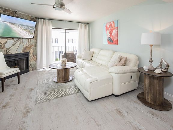 Beautiful Coastal Retreat! The Flamingo at TI Lagoons is a bright and spacious townhouse nestled between Boca Ciega Bay the Gulf of Mexico on beautiful Treasure Island. WALK across the street to the beach or play in the Bay located just off the back side of the property! The Flamingo has two bedrooms one king and two twins two full baths and one half. A private balcony with pool view, partial bay views and you're just steps away from world renowned Sunset Beach, known for its gorgeous sunsets! Plenty of walkable entertainment nearby! Short ride to John's Pass and there is a Suncoast Beach Trolley stop steps from your front door! The Flamingo comes equipped with everything you need to make your stay comfortable and enjoyable including a garage where you will find water floats beach chairs, umbrellas, bikes and a charcoal grill! Community dock on site. Public boat ramp is one street away! Summer fun! 28 day Minimum/Maximum