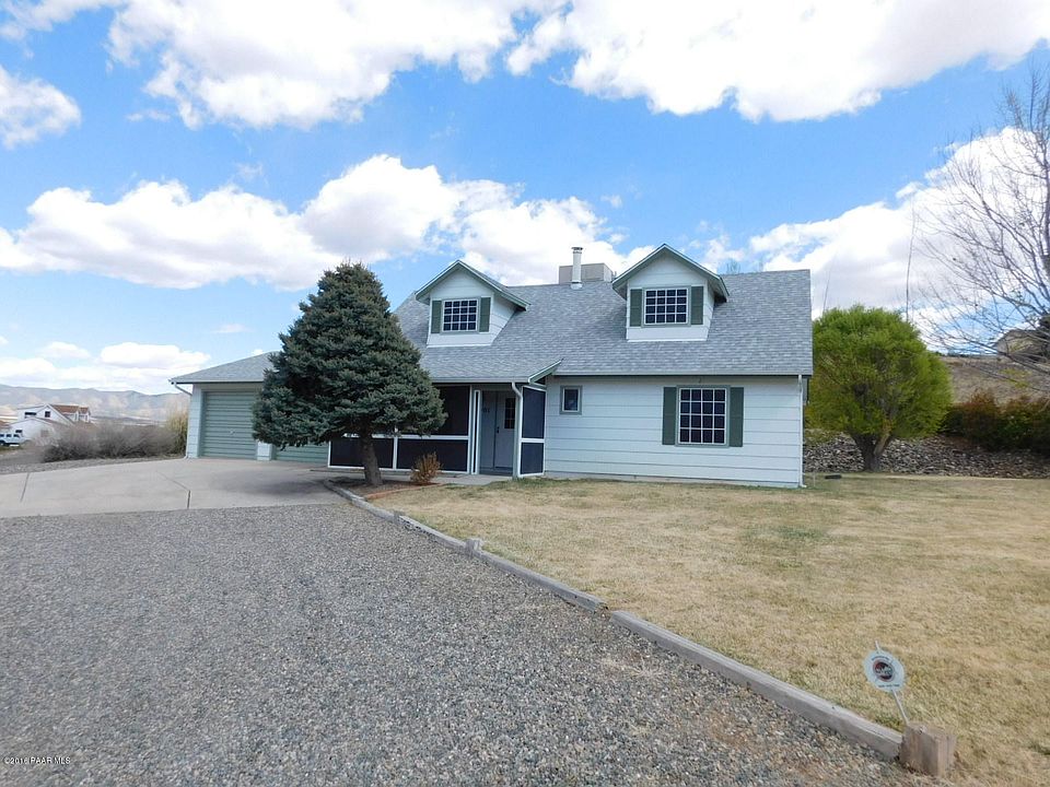 Located on the east side of the highly desirable Prescott Valley Unit 20 in the Superstition Hills Neighborhood near State of Arizona open space, this property offers an excellent view of the countryside and mountains on a site that is over half an acre. The 4 bedroom home has 3 full bathrooms plus an attached double garage. Covered patios in the front and back of home provide excellent outdoor living space. An elevated deck up the hill from the home has panoramic views. The interior has a fresh coat of the paint and the carpeting was replaced as well along with new tile in the kitchen. This is a Fannie Mae HomePath property.