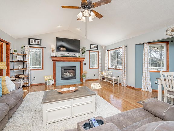 Country living at its finest in this move-in ready sprawling ranch situated on almost 5 acres and complete with a great open floor plan for easy entertaining, hardwood flooring, lovely living room with gas fireplace with tile surround, vaulted ceiling with ceiling fan, large windows to bring in the natural lighting, dining area with sliding glass door to the backyard to make your summer barbecues a breeze, and light and bright kitchen with solid surface counter tops, island with breakfast bar, tile backsplash, an abundance of counter and cabinet space, newer recessed lighting, fully applianced, under cabinet lighting, and pantry. The convenient main floor laundry is right off the kitchen and features extra cabinet space, and sink. Spend peaceful nights in this spacious main floor master suite complete with hardwood flooring, large windows, trayed ceiling with ceiling fan, neutral décor to go with any decorating idea you may have, walk-in closet with built-in shelving, and private bathroom with tile flooring, granite counter tops, linen cabinet, upgraded tile shower, and jacuzzi tub. The finished basement is the perfect space to just hang out and features new luxury vinyl flooring, electric fireplace, neutral décor, daylight windows, and two additional bedrooms. Sit back and relax out on the covered deck with two ceiling fans overlooking the backyard with salt water above ground pool, fruit trees, and lots of room to enjoy the outdoors. This sensational estate also features a massive 50x33 shop with an added 30 amps for RV…A Car Lover’s Dream! Property is in Clearwater School District. Recent improvements include new advanced septic system, luxury vinyl flooring in lower level, updated bathrooms, new interior paint, and new lighting in the kitchen. Welcome Home!