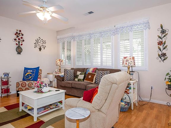 Exquisite Home in Gated Community The Greens at Seven Oaks with endless amenities! This 2 bedroom, 2 bath home features a formal living room, dining area, indoor utility, and over-sized bedrooms. The spacious kitchen includes tile countertops, beautiful white cabinetry, walk in pantry, and a breakfast bar. Some of the many amenities include updated tile flooring and much more! The exterior features a well maintained backyard with a covered patio perfect to enjoy the fresh evening breeze. Schedule your appointment today! (55+ age community)