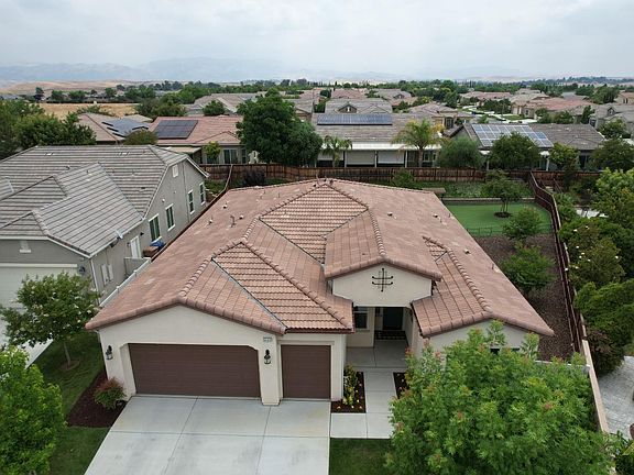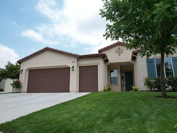 This is a Beautiful home found a gated community for 55+ on oversize low-maintenance lot located in cul-de-sac. Home features 2 Large bedrooms plus office, 2.5 bath, including a formal dining room. Gourmet chefs kitchen with granite counters, stainless steel appliances, double ovens and an eat in kitchen! Primary bedroom features a bay window, ensuite bath with granite counter and dual vanities, soaking tub, large shower and huge walk-in closet. Laundry room with sink and lots of cabinets. Stunning Tile and Wood floors throughout. Living area is Perfectly placed to the inviting Backyard. Great for entertaining, with extra-large stamped concrete, covered patio, room for garden and fruit trees! 2 car plus golf cart garage.Every box is checked in this Home. Truly a great and specious Home with Resort Style Living. Complete with community pool, club house, gym, outdoor courts and much more! Come see it soon.