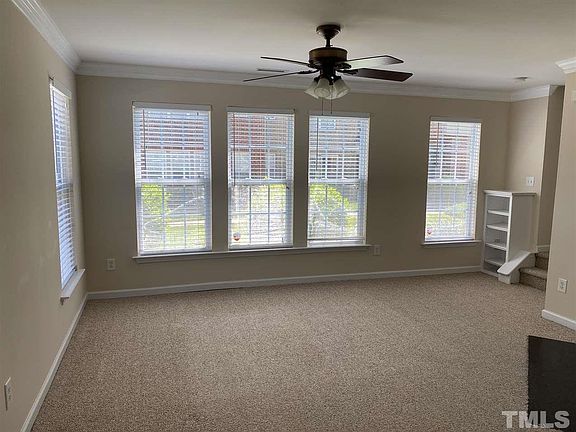 Desirable END unit townhome in prime NW Raleigh neighborhood. Spacious living room includes gas log fireplace and built-ins.Large master suite with crown molding, chair rail, dual vanities, garden tub with separate shower & walk in closet with built-ins. Second bedroom offers private full bath. Pool community. Conveniently located near RTP, I-540, I-40, RDU and all that Brier Creek offers.