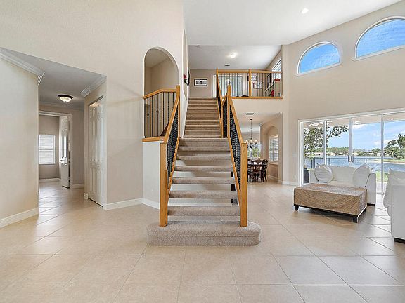 You will be wowed by this Stonecastle II model in the estate section of Stonehaven. This immaculate waterfront home features 5 BD, 3 BA, plus loft + bonus room! Soaring ceilings & open concept is perfect for entertaining. Neutral diagonal tile + BRAND NEW carpet. 1st floor Master Retreat, walk in closet w/built ins, en Suite w/ frameless shower enclosure, dual sinks & roman tub. 2015 & 2016 A/C. Accordion Shutters upstairs. New interior & exterior paint throughout. Gourmet Chef's island kitchen w/ double oven and huge walk-in pantry. Large family room leading to outdoor oasis! Relax with lake breezes under your covered patio & enjoy expansive lake views! Fenced yard. A MUST SEE! A-Rated Wellington schools w/o the high taxes!
