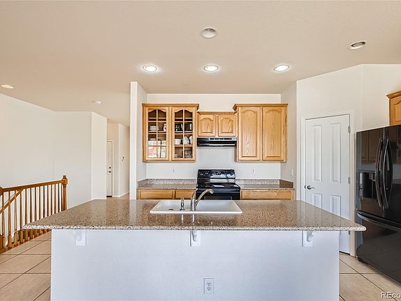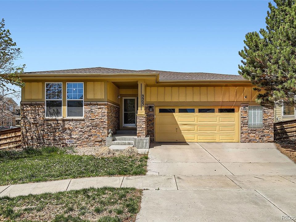 Don't miss this spacious Ranch home on a corner lot in Reunion! Brand new carpet, fresh neutral paint, built-in speakers, and brilliant natural light run throughout the warm and welcoming interior. The thoughtful main floor layout boasts a spacious open concept living room and eat-in kitchen at the rear of the home and an elegant formal dining room off the inviting foyer. Gather around the cozy gas fireplace on a chilly evening or dine al fresco on a sunny day on the patio that connects to the breakfast nook via a sliding glass door. The sizable kitchen features abundant cabinet space, beautiful granite countertops, a large island with seating, and a pantry. Privately situated off the living room, the primary suite impresses with a tray ceiling, a 5-piece bathroom, and a walk-in closet. The main floor is completed by 2 sunny secondary bedrooms, a full bathroom, the laundry room, and access to the 2-car garage. More living space awaits in the finished full basement that hosts a family room with a wet bar, 2 conforming bedrooms, a full bathroom, and a dedicated office with French doors. The fenced backyard awaits personalization from your green thumb. Great Reunion location in a quiet neighborhood around the corner from a park and close to lovely Reunion Park that features a coffee house, rec center, trails, ponds, playgrounds, and a fantastic pool with water slides. Relish easy access to shopping, dining, Second Creek Open Space, Buffalo Run Golf Course, E-470, and DIA (only a 15-minute drive!).
