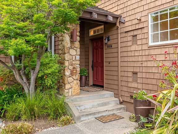 Formal dining room right off the kitchen, the light filled living room has a vaulted ceiling and fireplace for your enjoyment & relaxation. Glass doors open onto the patio, deck overlooking the gardens & pool area.