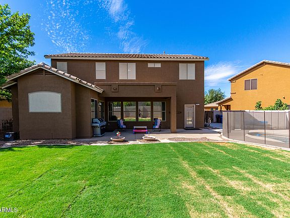 Wow, what a find! This 5 Bed/3 Bath home w/HUGE backyard & fenced-in pool & 3 car garage in prime location can now be yours! Full Bed/Full Bath downstairs, light & bright living & dining room overlooks the backyard oasis, and a 2nd living room that opens to the kitchen & eat in breakfast area. Upstairs you'll enjoy 3 bedrooms & full bathroom offering dual sinks w/ tub/shower combo. Primary bedroom is spacious w/ a private en-suite boasting a soaking tub, walk-in shower, dual sinks, and walk-in closet. You will love the backyard this summer in the pebble tec pool (fenced with a water feature), large covered patio, massive open grassy area, and RV gate with concrete pad. Augusta Ranch offers a public golf course, parks & green spaces, and best of all, Mesa Taxes with Gilbert Schools!